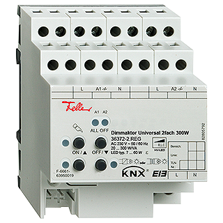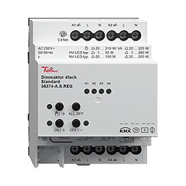 Die optimierten Dimmaktoren sind weitestgehend identisch, d.h. in bekannter KNX-Manier aufgebaut. Die Dimmaktoren eignen sich zum Schalten/Dimmen von Glühlampen, 230 V Halogenlampen und NV-Halogenlampen mit induktiven Trafos und Tronic-Trafos.