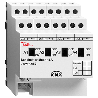 Jeder Schaltausgang bei den Schaltaktoren 16 A 4fach und 8fach verfügt über ein separates bistabiles Schaltrelais. So bleiben Schaltzustände auch bei Busspannungsausfall gesichert.