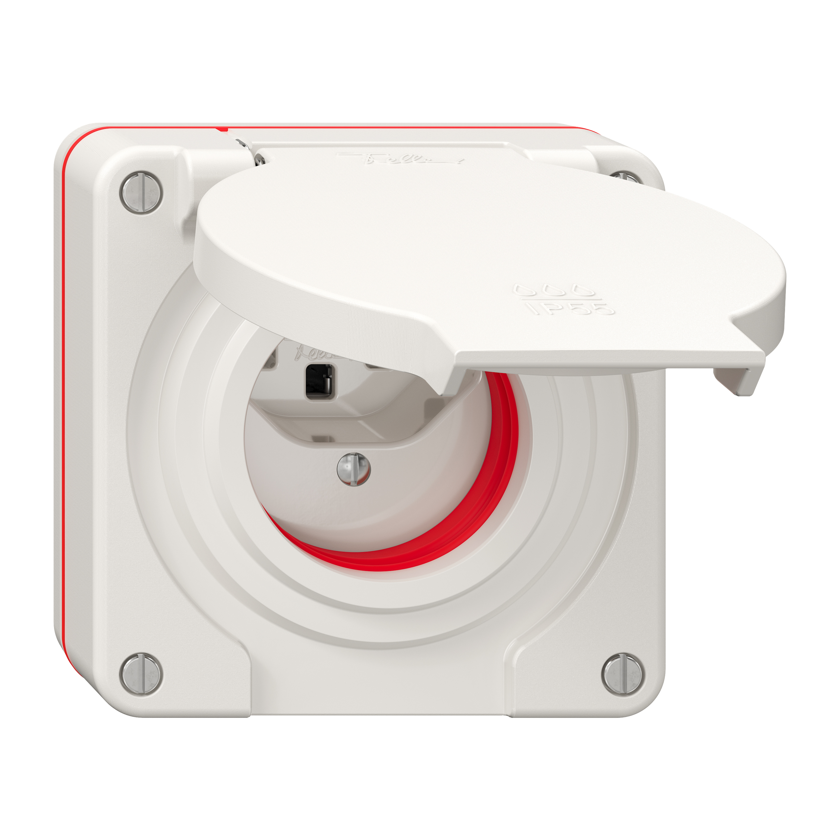 Für die künftigen Nass-Installationen stehen unseren Kunden aber nach wie vor die NEVO IP55/IP55 Steckdosen zur Verfügung. Sie entsprechen der 2019 in Kraft getretenen Normenserie SN 441011 – erkennbar durch die rote Dichtung und das Tropfensymbol. Erhältlich als Typ 13, 23, 15 und 25 sind diese auch mit offenem Klappdeckel staub- und strahlwasserdicht, sofern der entsprechende IP55/IP55 Stecker eingesetzt ist. Das heisst: Sie ist schon heute auf dem Stand von morgen.