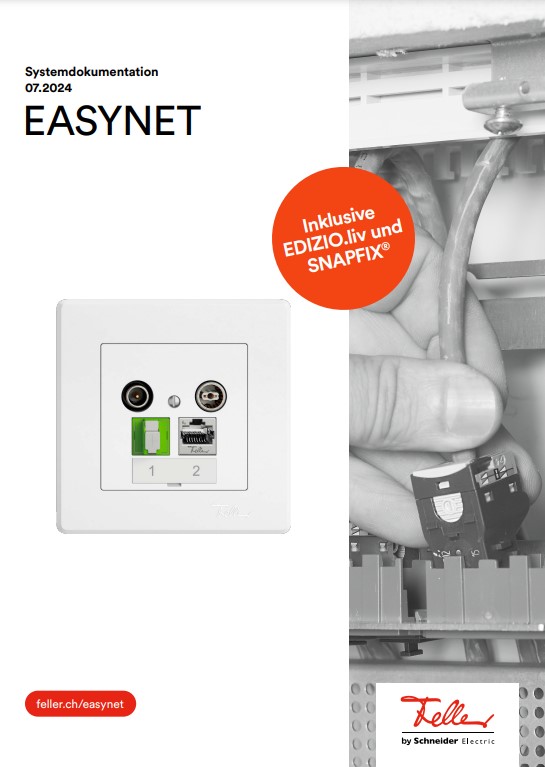 Sämtliche Feller EASYNET Netzkomponenten erfüllen die neuesten ISO/IEC-Anforderungen und sind zudem alle IP-tauglich. Die Installationskabel sind POE+ und die RJ45-Module sind POE++ zertifiziert. Weiter unterstützen die 2-GHz-Multimedia- und Breitbanddosen DOCSIS 3.1. EASYNET basiert auf Twisted-Pair-, Fiber- und Koaxial-Netzwerken.