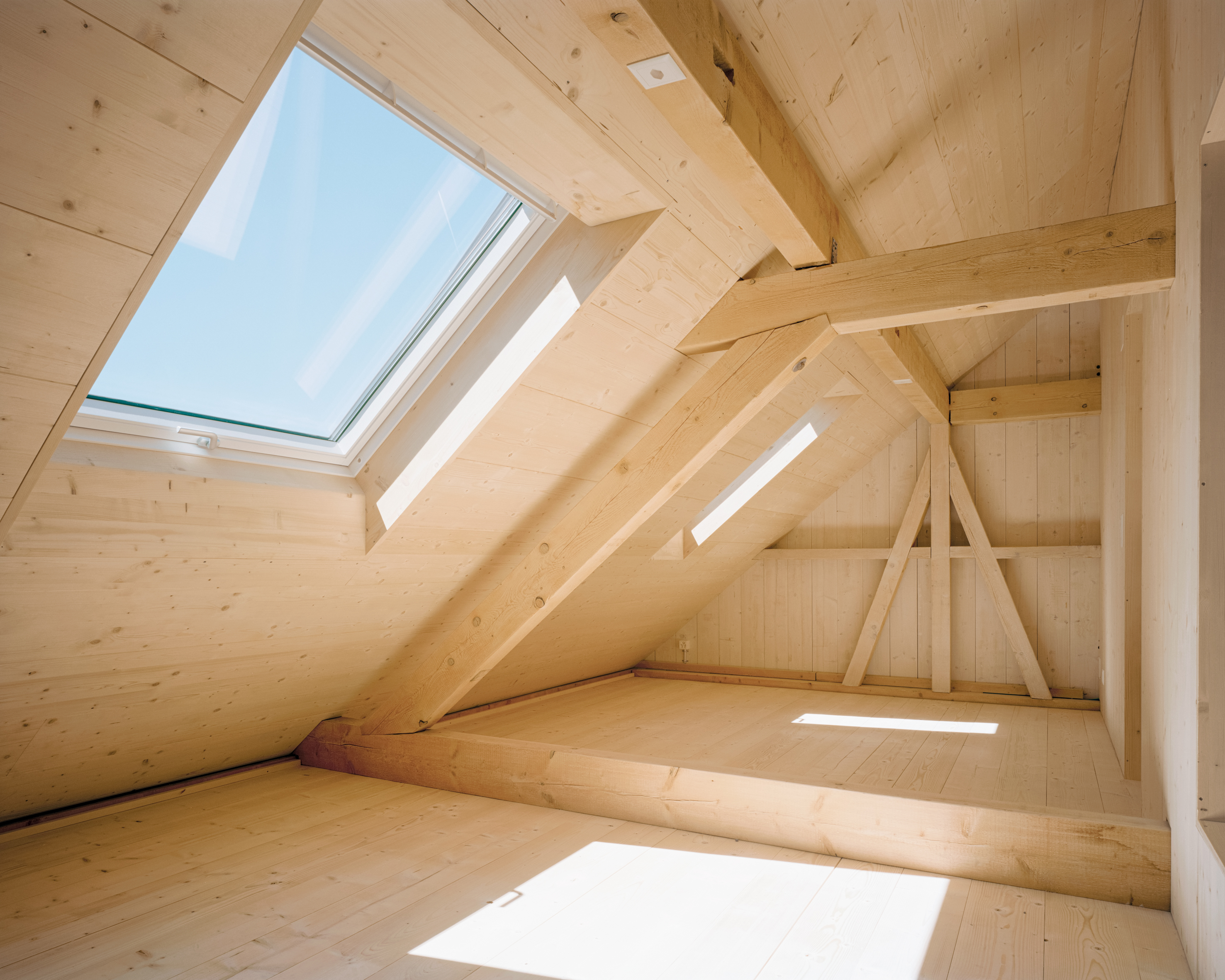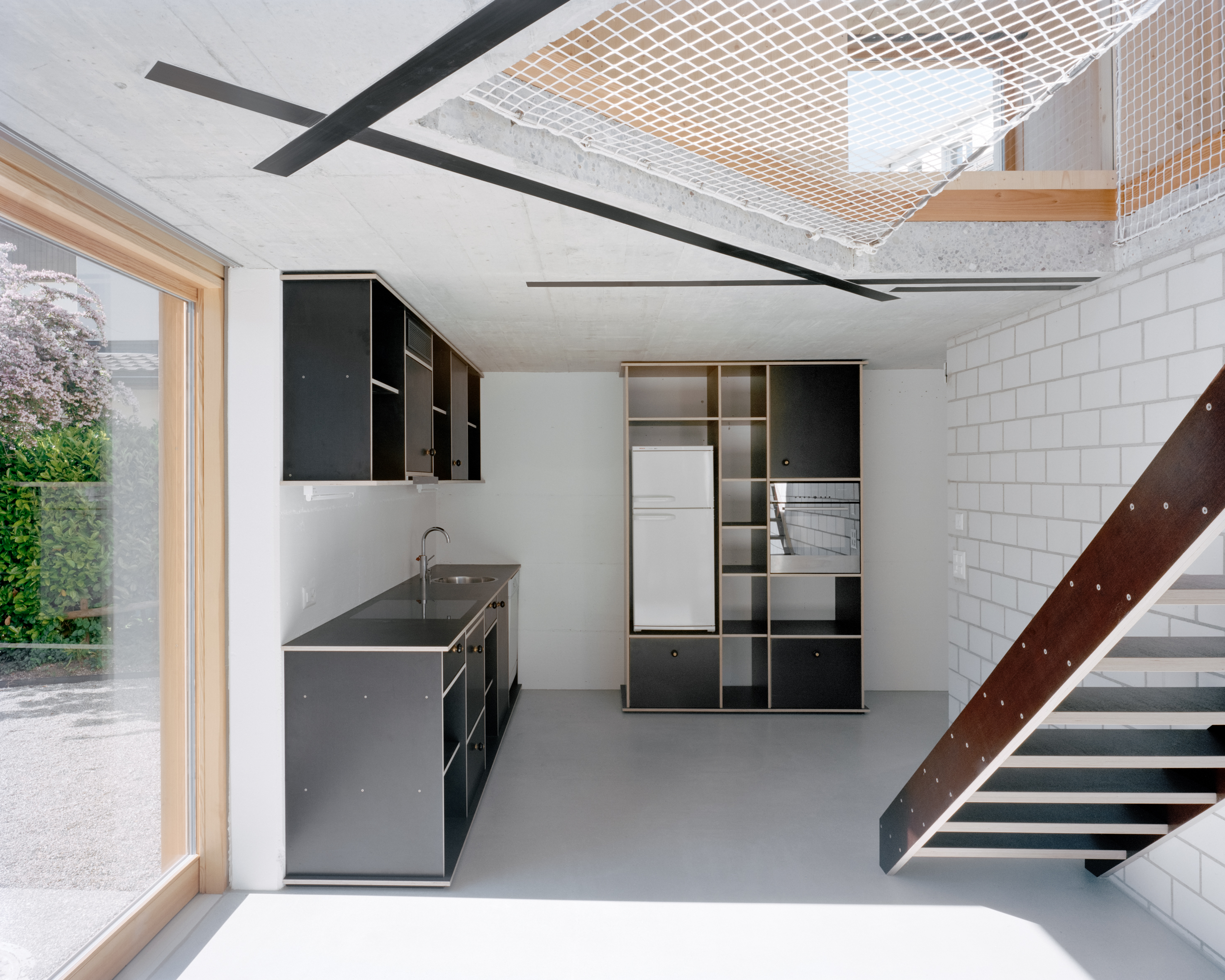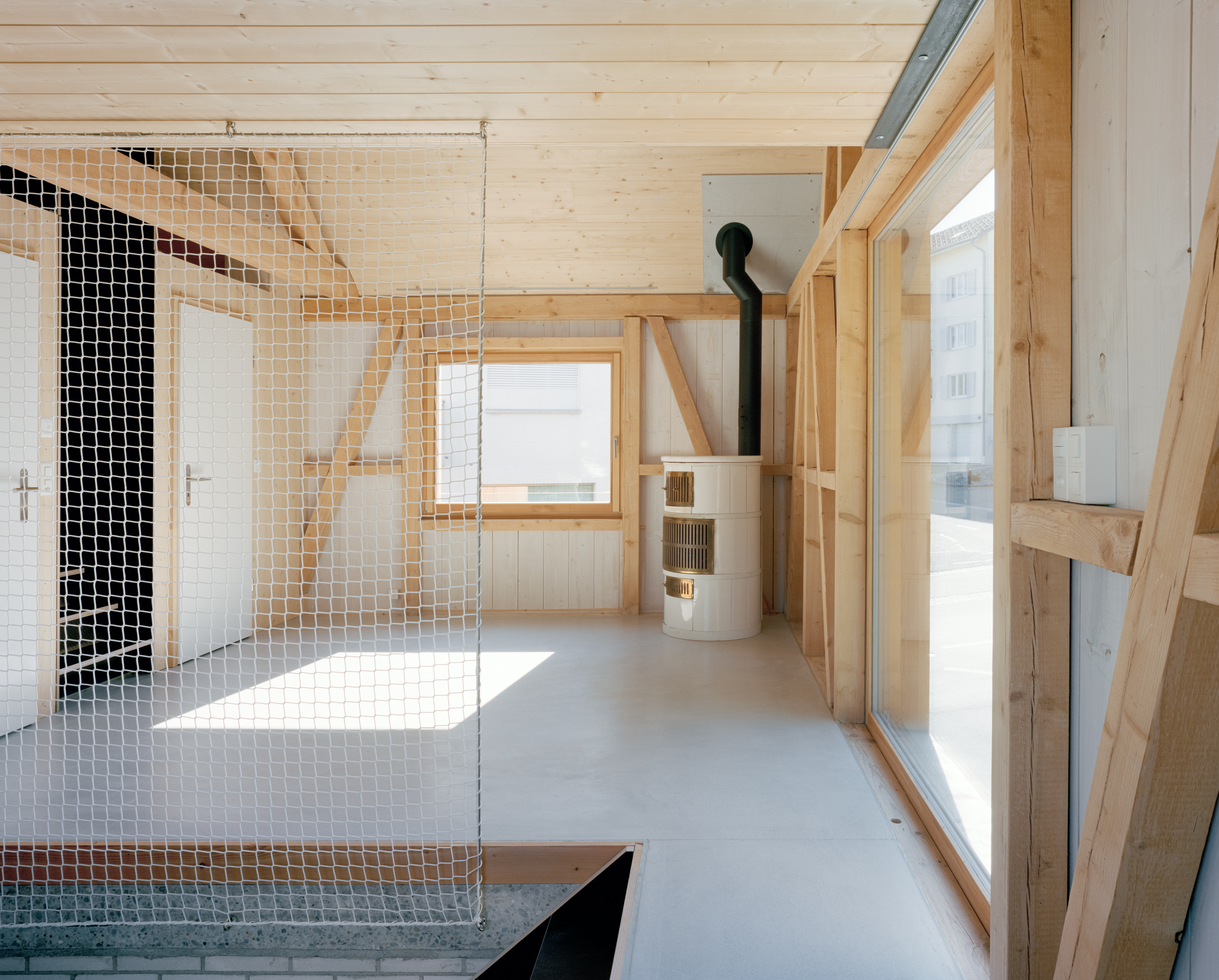 Besuchern des Dorfes Jonschwil sticht unweigerlich ein kleines quadratisches Haus ins Auge. Mit drei Zimmern, 99 Quadratmetern Wohnfläche und gebaut aus natürlich belassenen Materialien, nutzt es den wenigen Platz durch sein überraschendes wie überzeugendes, sogenanntes Spiralkonzept. Optisch passt es sich dem Ort auf vorbildliche Weise an und prägt ihn dennoch merklich. Auch auf Nachhaltigkeit wurde konsequent geachtet, so sind beispielsweise die meisten Baumaterialien demontierbar und wiederverwertbar.