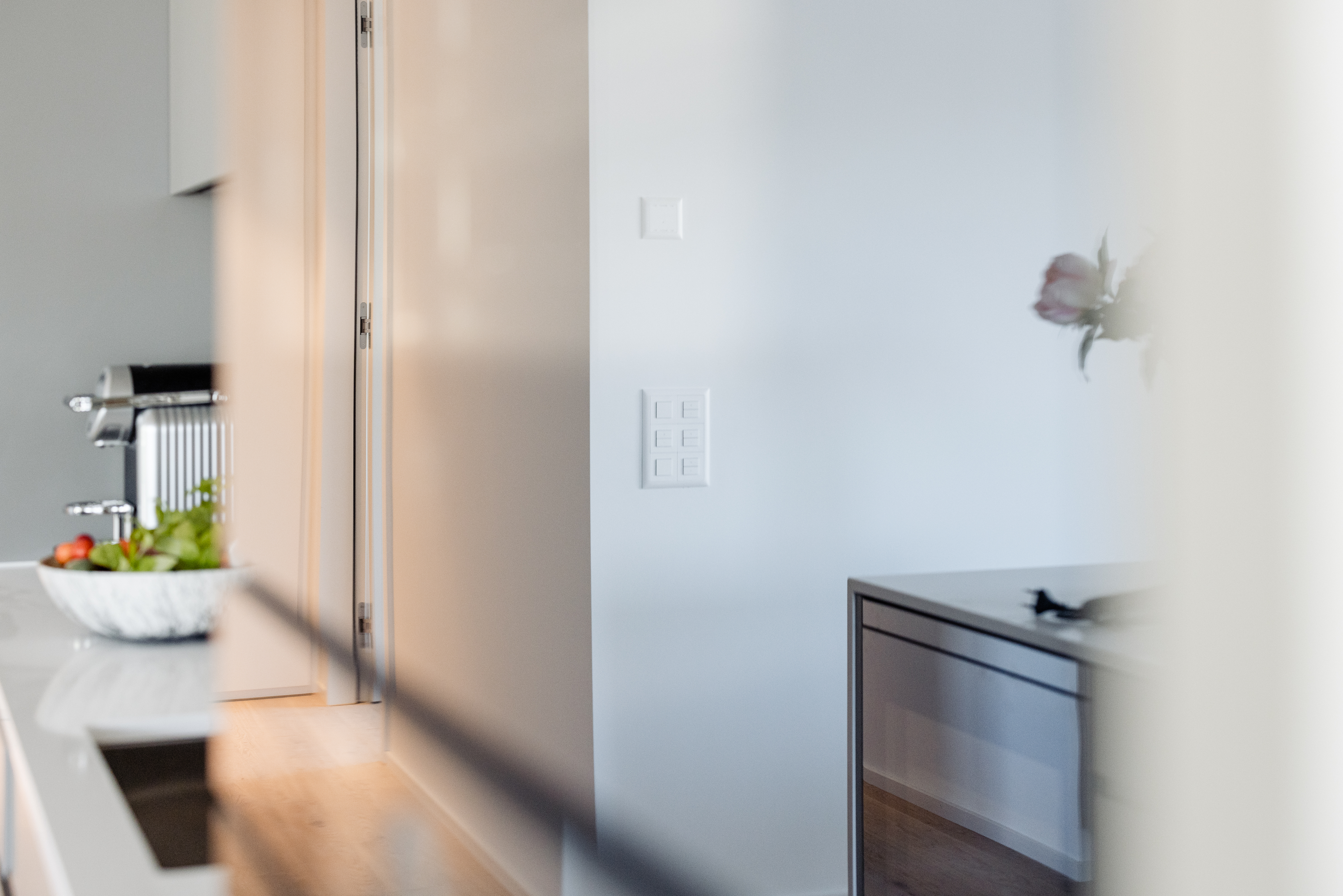Die Eigentumswohnungen im Stöcklin Areal wurden von Beginn an alle Wiser Funktionen (Licht, Storen, Raumtemperaturregelung und die Wetterstation) eingebaut. Das ist jedoch kein Muss. Eine Besonderheit von Wiser by Feller ist nämlich, dass sich das gesamte System praktisch beliebig skalieren lässt. Neue Komponenten können unkompliziert und schnell ausgetauscht oder sogar neu hinzugefügt werden. Zudem besteht die Möglichkeit einer raumweisen Integration, bei der beispielsweise zunächst das Wohnzimmer mit einer Smart-Home-Lösung ausgestattet wird und weitere Räume gegebenenfalls zu einem späteren Zeitpunkt folgen. Wiser by Feller erlaubt es aber ebenso, Funktionen Step-by-Step nachzurüsten, also zum Beispiel zuerst Licht und Storen zu integrieren und später eine Raumtemperaturregelung zu ergänzen. Da es sich bei der Smart-Home-Lösung um ein offenes System handelt, kann es zudem problemlos in Systeme anderer Hersteller integriert werden, was zusätzlich neue Anwendungsfälle ermöglicht. Eine Versorgung mit regelmässigen Sicherheitsupdates für die Software ist selbstverstsändlich gewährleistet.