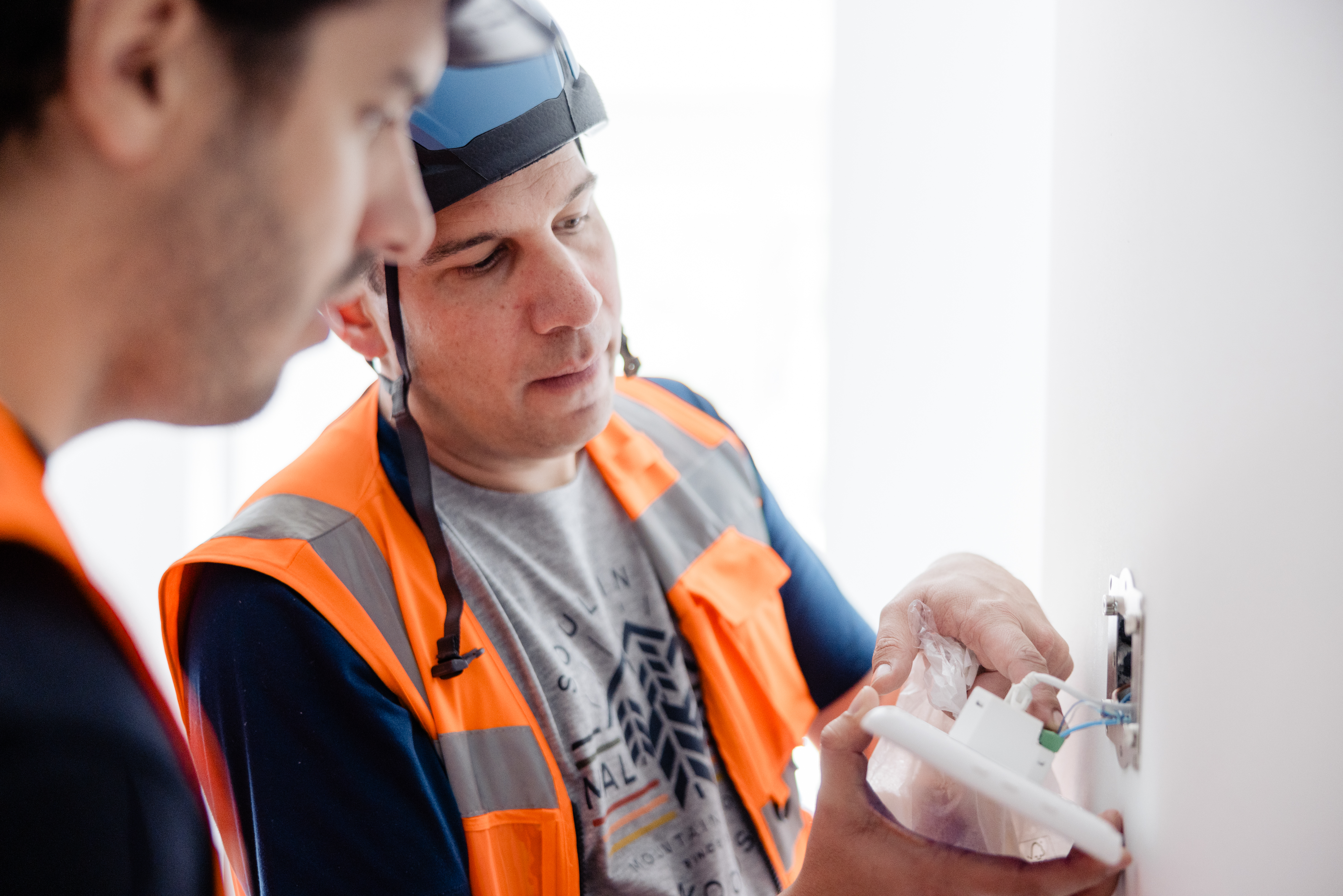 Alles bei Wiser by Feller basiert auf dem sogenannten K+ Kommunikationsdraht, der zusammen mit dem Aussen- und Neutralleiter in die ohnehin benötigte Verrohrung miteingezogen werden kann. Er verbindet sämtliche Funktionen und stellt deren Kommunikation sicher. Einmal verbaut, lässt sich das System dann jederzeit ohne grossen Aufwand erweitern. Neue Apparate können entweder über die Wiser eSetup App oder mit einem simplen Magneten in Betrieb genommen und anschliessend in das bestehende System eingebunden werden. Das bedeutet eine erhebliche Arbeitserleichterung.