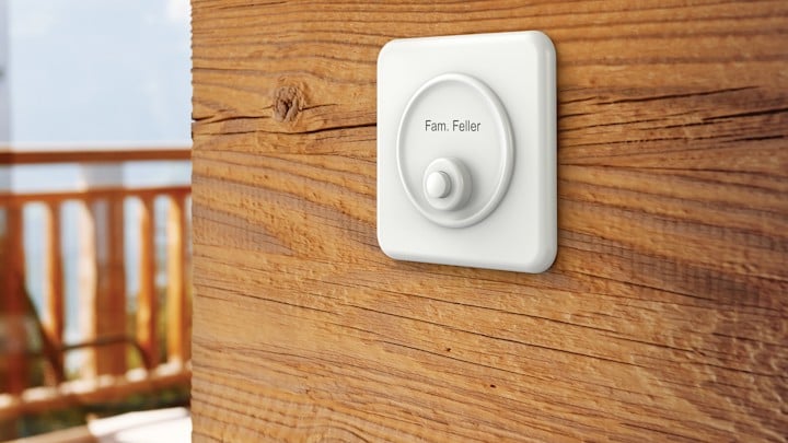 Le carillon de porte Feller en design EDIZIOdue s'intègre parfaitement à l'ensemble de l'installation électrique. Monté dans une combinaison d'interrupteurs ou comme appareil indépendant au mur ou au plafond, il prend peu de place et ses formes et couleurs constituent une unité.