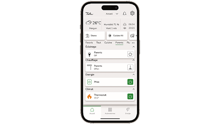Commandez l'éclairage, les stores, le chauffage ou l'infrastructure de recharge des VE simplement via l'application.