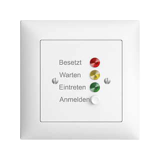 Sur la station de table, la touche correspondante est actionnée pour signaler aux visiteurs si le bureau ou la salle de réunion est libre ou occupé(e). Le signale s'allume ensuite sur la station de porte.