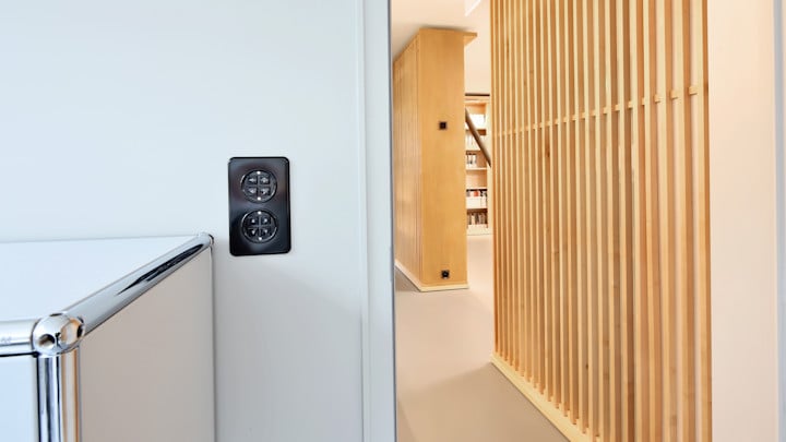La décision du bureau d’architecture est à reconduire au facteur que l’icône suisse du design, la gamme standard de Feller, offrait depuis début 2016 tous les avantages d’une technologie de bâtiment ultramoderne – juste à temps avant l’ouverture au début de l’été 2016. Dans la Villa Planta sont mis en œuvre des interrupteurs KNX qui permettent de piloter automatiquement l’éclairage et les stores dans les bureaux de manière individuelle. La commande à distance serait aussi possible par appli. Tout comme les installations vidéo de tout genre dans les salles d’exposition que des prises multimédia STANDARDdue pilotent.