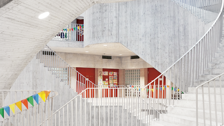 Negli edifici di nuova costruzione gli architetti puntano molto sulla luce naturale. Giunge attraverso numerose finestre e un atrio in quasi ogni angolo del nuovo edificio. Tutto è stato accuratamente studiato anche nel caso in cui il sole resti nascosto o sia troppo forte. Sensori di presenza e luminosità garantiscono, grazie ai dispositivi KNX di Schneider Electric, che l'illuminazione si adegui sempre alla luce solare incidente e agli avvolgibili. In questo modo i bambini possono apprendere sempre in condizioni di luce ottimali e non devono neppure azionare l'interruttore della luce. Se lo vogliono fare comunque: variare manualmente la luminosità resta sempre possibile. Tramite i pulsanti Feller KNX e i DALI-Gateways di Schneider Electric nei quadri elettrici dove viene tutto controllato.