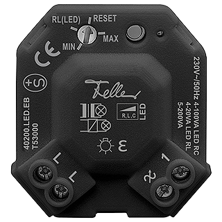 Oltre al vincitore del test 40200.LED Feller ora immette sul mercato un nuovo prodotto che consente la variazione di luce senza problemi di lampade LED, lampade a incandescenza e lampade alogene BT e AT: si tratta del modulo variatore di luminosità universale LED 40200.LED.EB. I suoi vantaggi: il nuovo modulo variatore di luminosità può essere semplicemente collocato in una scatola da incasso da 45 mm comunemente reperibile in commercio dietro un pulsante singolo, un pulsante doppio o una piccola combinazione (scatola da incasso da 55 mm). In questo modo da una presa 1x1 è possibile variare la luminosità di fino a due circuiti di illuminazione. Il modulo variatore di luminosità è pertanto adatto anche per ristrutturazioni e applicazioni in cui si desidera un maggiore comfort.