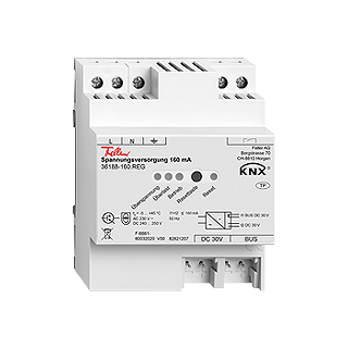 L'alimentatore garantisce e monitora la tensione del sistema KNX e garantisce l’alimentazione della comunicazione dati delle utenze KNX attraverso la linea bus. Dispone ora di un contatto di segnalazione a potenziale zero per messaggi operativi e diagnostici.