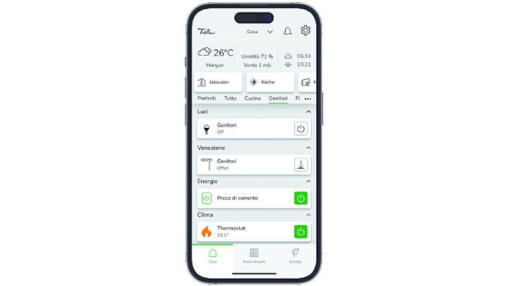 Controllare facilmente l'illuminazione, le tapparelle, il riscaldamento o l'infrastruttura di ricarica EV tramite l'app.