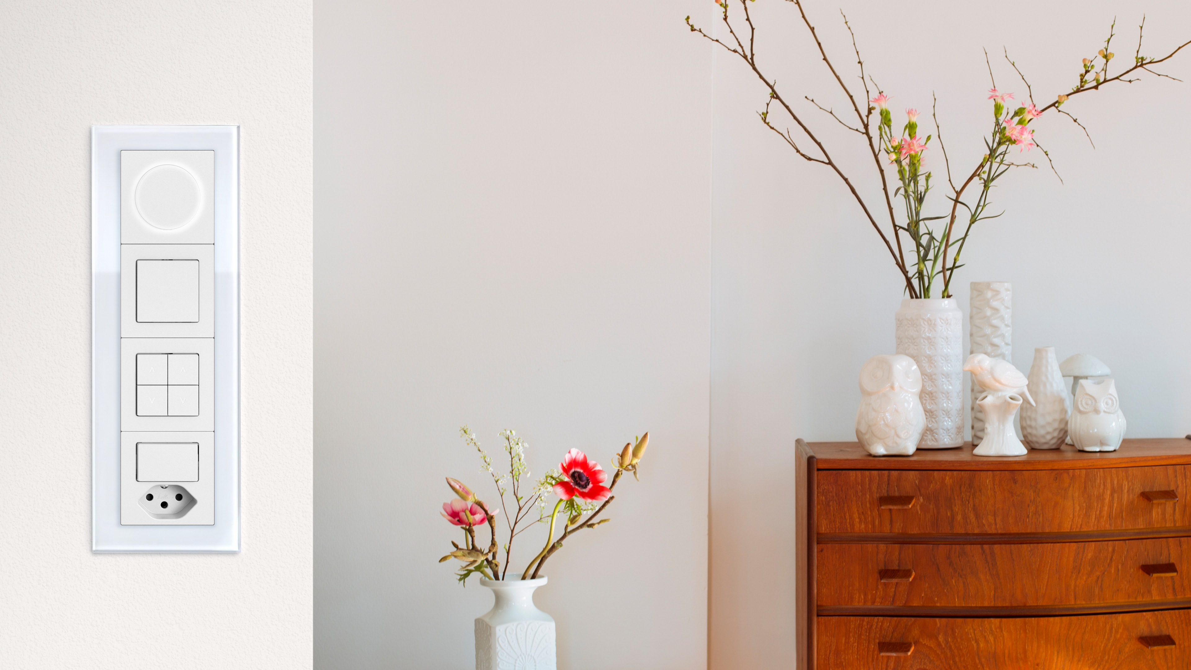 Oltre alla gamma di colori EDIZIO.liv, sono disponibili anche sei versioni con colori esclusivi per gli elementi di comando. Le funzioni raffinate, in combinazione con i telai in materiali di pregio, creano un'interazione perfetta tra funzione e materiale.