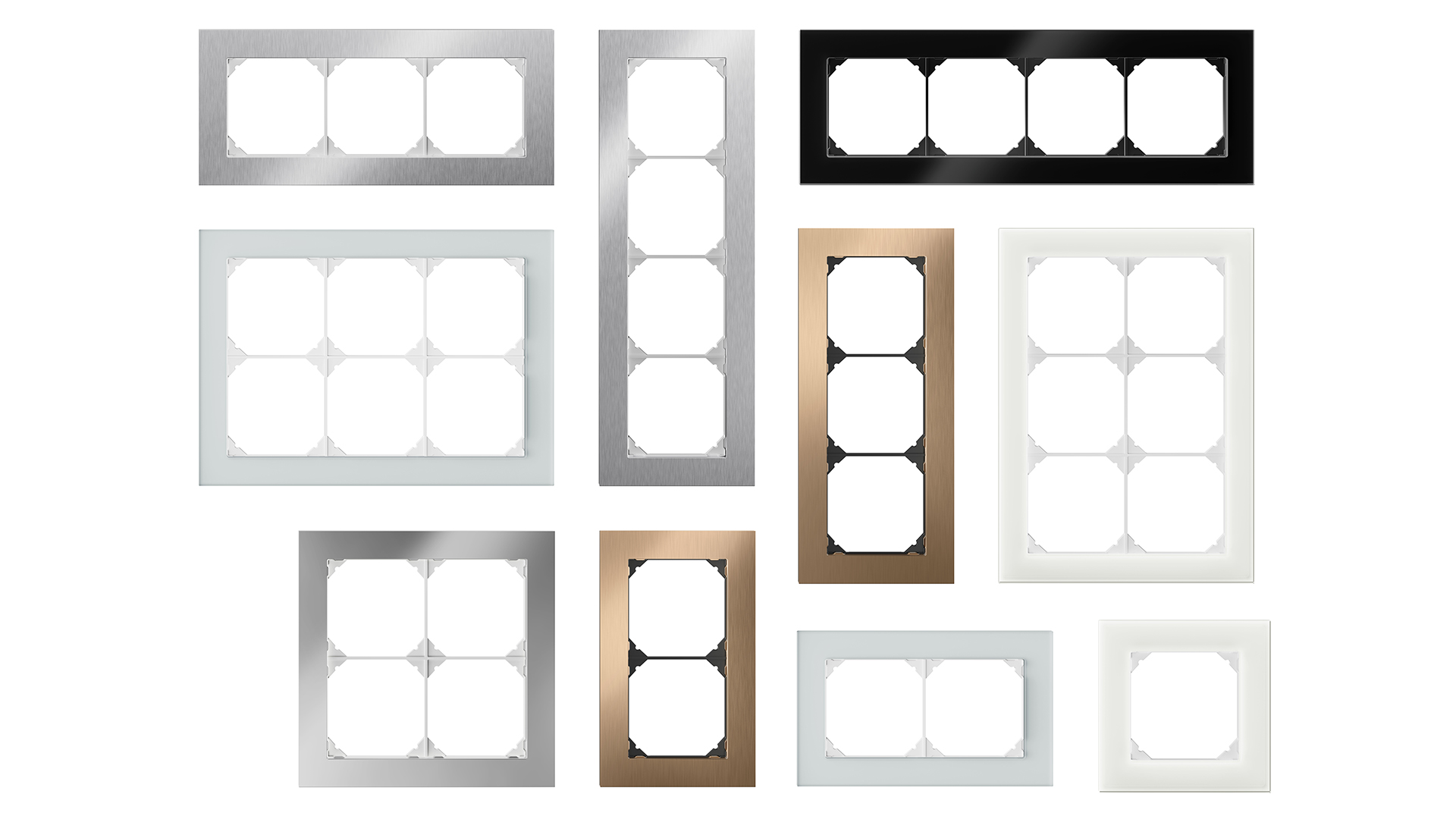 EDIZIO.liv prestige è un elemento di stile esclusivo che valorizza qualsiasi design d'interni. Combina un design di alta classe con materiali pregiati e accuratamente selezionati. I telai di copertura in vetro, acciaio cromato, ottone e specchio satin possono essere combinati in vari modi con i sei sobri colori di EDIZIO.liv, a seconda del concetto di design previsto. La linea di design è anche compatibile con SNAPFIX®.
