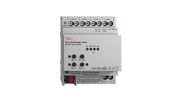 Smarte Lichtsteuerung – schnell, unkompliziert und ohne Adressierung. Der DALI Broadcast Aktor 4fach steuert bis zu 128 Leuchten in 4 Gruppen. Mit Funktionen wie Tunable White und RGBW-Farbsteuerung sorgt er zudem für angenehme Lichtverhältnisse, ganz ohne aufwendige DALI-Programmierung.